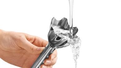 Ножка имеет 6 выступов, позволяющие ингредиентам легко попадать в зону работы ножей, одновременно защищая от разбрызгивания и обеспечивая полное измельчение крупных кусков. Дизайн ножки в форме колокола и уникальное расположение лезвий внутри него под наклоном друг от друга позволяют направлять ингредиенты до ножей для быстрого смешивания. Новые стандарты в каждом погружном блендере Braun.