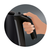 Легко снимайте чайник с подставки и снова ставьте его на нее из любого положения благодаря круговому соединению, которое подходит как для правшей, так и для левшей.