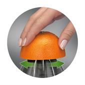 Никаких лишних кнопок – просто слегка надавите на конус при помощи фрукта и соковыжималка начнет работу.